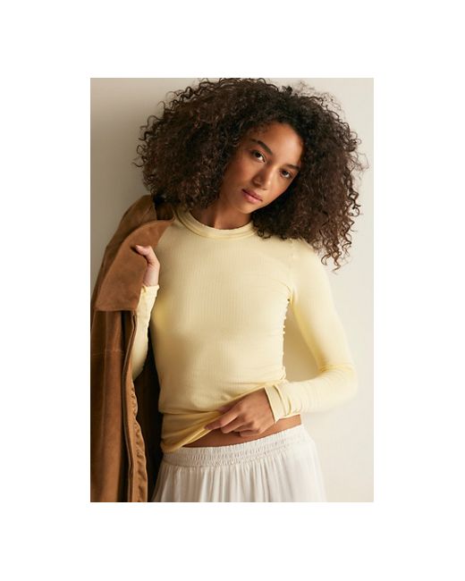 Just as cute as it is cozy, this super soft long sleeve is featured in a staple silhouette and slightly ribbed fabrication, perfect for lounging at home or styling for a more put-together 'fit. * Scoop neckline * Raw hems * Lush modal fabrication So Soft Seamless Modal Long Sleeve by Intimately at Free People in Double Butter, Size: XS/S
