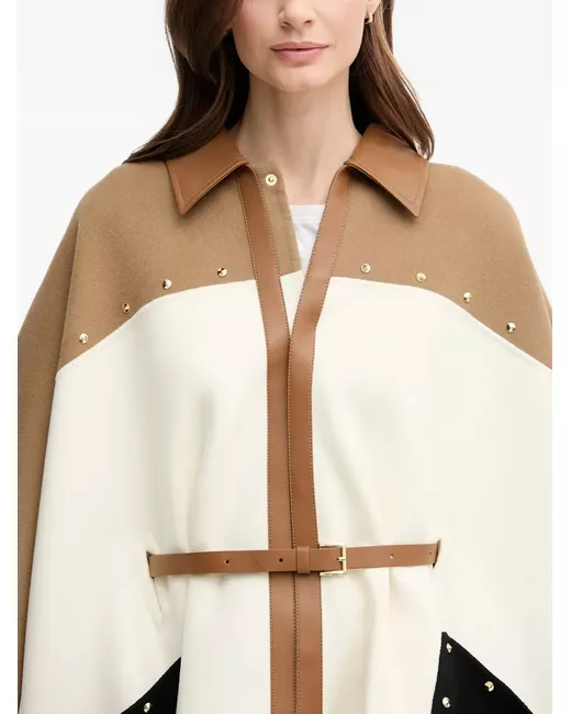 light cream and brown gold-tone studs belt contrast panels classic collar open front