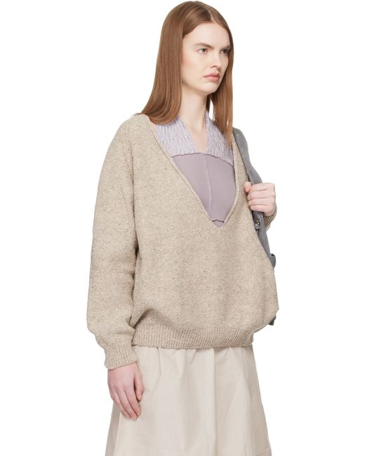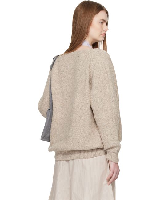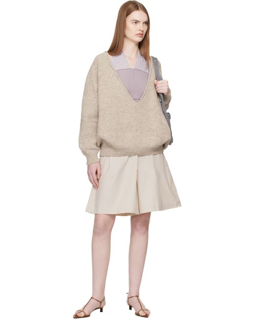 Purl-knit recycled wool-blend sweater. · Certified GRS and OEKO-TEX® · Rolled edge at plunging V-neck · Rib-knit hem and cuffs · Raglan sleeves Supplier color: Ingra sand