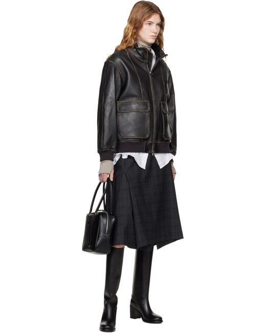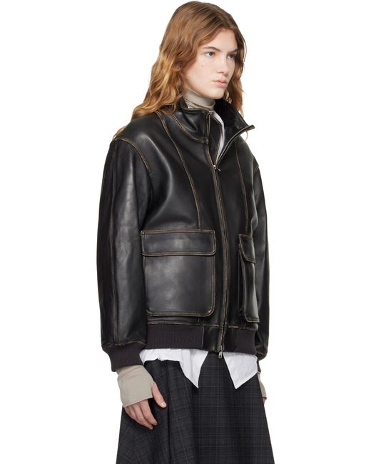 Padded buffed lambskin jacket. · Fading throughout · Paneled construction · Stand collar · Two-way zip closure · Press-stud flap pockets at waist · Rib-knit hem and cuffs · Welt pocket at interior · Full satin lining Supplier color: Black
