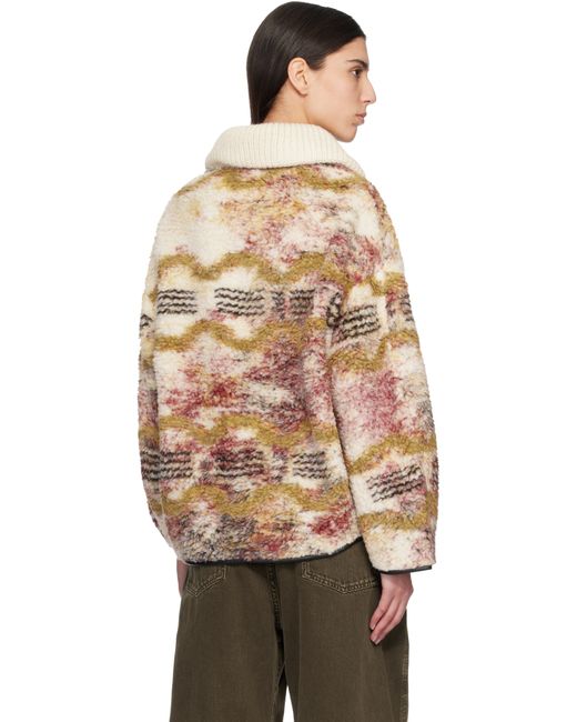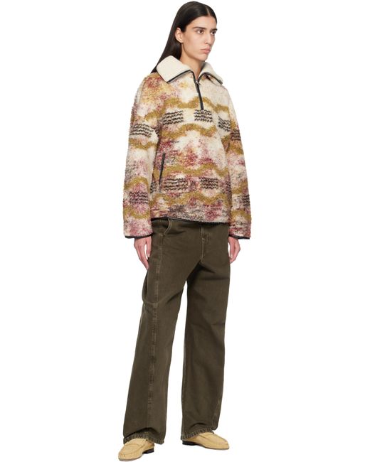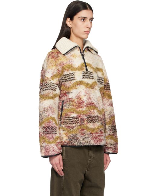 Sherpa fleece sweater. · Grained faux-leather trim and graphic pattern printed throughout · Rib-knit trim at fold-down stand collar · Half-zip closure · Welt pockets at waist · Dropped shoulders Supplier color: Ecru/Ochre