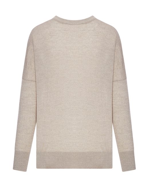 - Crew neck- Long sleeves- Straight hem- Dropped armholes- Two side slits- Ribbed trims- 100% wool- Color: Beige