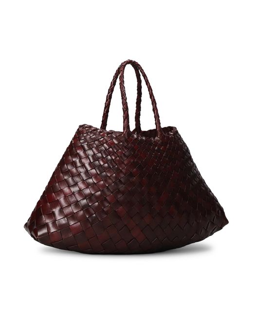 - Handwoven basket- Tapered buffalo calfskin- Unlined- Dimensions: 17 cm x 38 cm x 20 cm- Handle length: 16.5 cm- Color: Bruciato