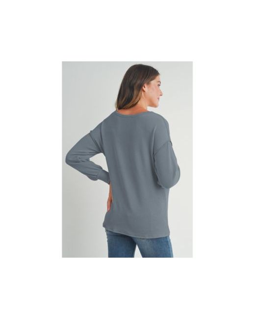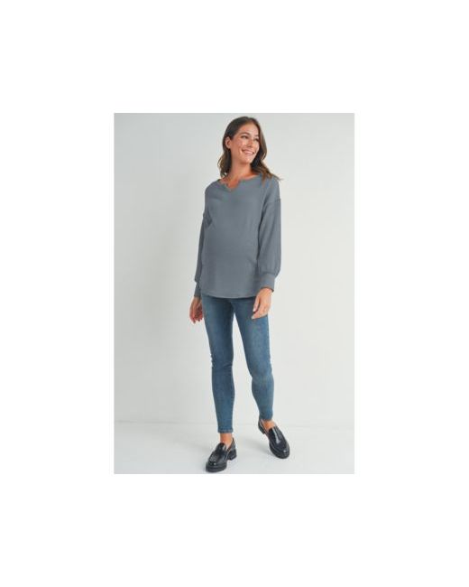 Women's Silver Maternity Ribbed Split Neck Long Sleeve Top