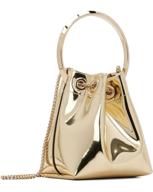 Patent faux-leather top handle bag. · Cable chain crossbody strap · Fixed O-ring carry handle · Tassels and cord-lock fastening at face · Chain drawstring closure · Satin lining · Logo-engraved gold-tone hardware · H6.5 x W5.5 x D4 Supplier color: Gold