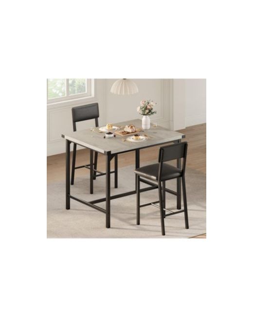 3-Piece Counter Height Dining Table Set for 2 with Footrest and Corner Protectors, Kitchen Table and 2 Upholstered Bar Stools, Gray