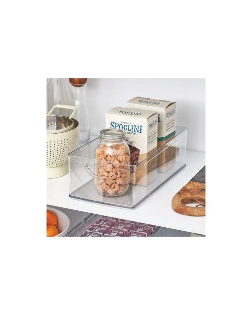Stop stressing and start streamlining your kitchen with the versatile iDesign Cabinet Bin. This no-fail organizer bins are ideal for corralling tall bottles, snacks, boxed foods, or any other items you want to avoid losing to the back of the pantry. The spacious, open-top design grants immediate reach-in access to everyday items, keeping your belongings easily accessible at all times. Its transparent construction offers unobstructed views for instant visibility, and two comfortable carry handles facilitate easy transport to make organizing a breeze.