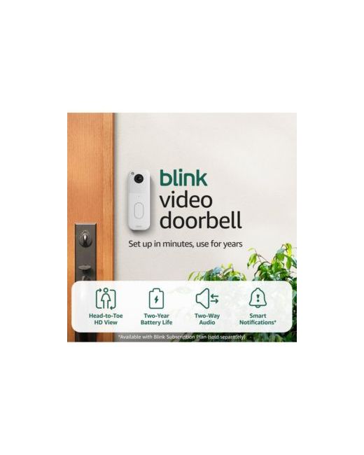 Video Doorbell - Smart security doorbell with up to two years of battery life, an expanded field of view, and improved security features for more peace of mind, no matter where you are.Last longer with two-year battery life - Experience up to two years of continuous security coverage with three included Aa Energizer lithium batteries and a Blink Sync Module (sold separately).See more at your door - Greet guests and watch packages get delivered, day and night, with head-to-toe Hd view and infrared night vision. Use two-way talk to hear and speak through the Blink app.Set up in minutes - Easily install wire-free or connect Video Doorbell to existing doorbell wiring. When wired, Video Doorbell will sound through your home. Without wiring, you can use your Blink Mini 2 camera (sold separately) as an indoor plug-in chime. You'll also get alerts on your Blink app with each doorbell press.