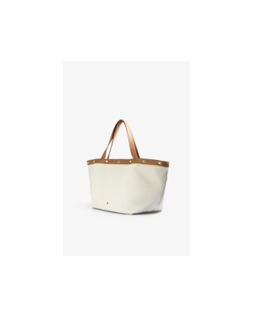 Tote bag made of rustic fabric. Made of canvas with faux leather details. Snap flap closure with studded logo detail. Short handles. Inner patch pocket and zip. Height: 33 cm / Width: 59 cm / Depth: 23 cm / Handles: 54 cm