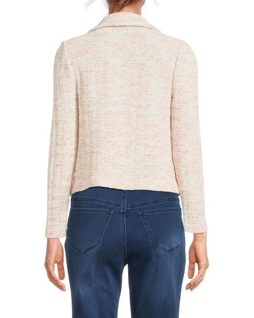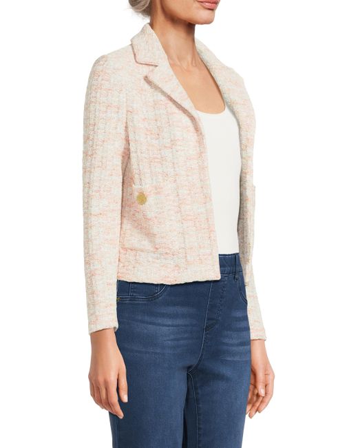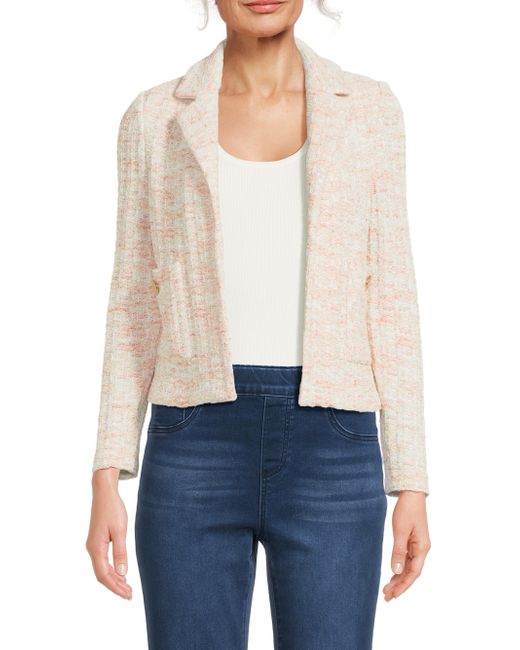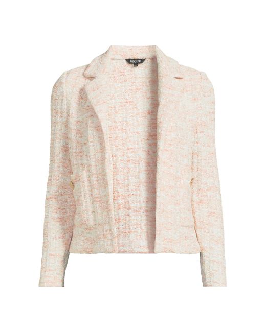 This tweed open-front jacket from Misook features notch lapels with subtle shoulder padding and side patch pockets. Notch lapels Long sleeves Side patch pockets Slips on 59% acrylic/29% nylon/12% viscose Machine wash Imported SIZE & FIT About 20" from shoulder to hem Model measurements: 5'10" tall Model is wearing a US size Small. Modern Collections - Modern Coll > Misook > Saks Fifth Avenue. Misook. Color: Fresh Mint Mystic Green Amber. Size: Small.