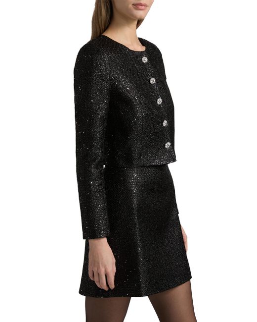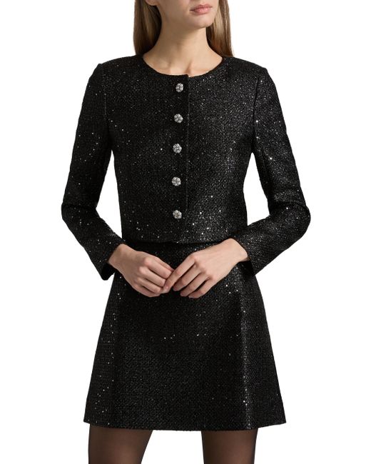 This Carolina Herrera crop jacket shimmers with metallic weaving, scattered sequins, and jeweled buttons along the front. Made in Italy, this collarless design is tailored with front darts for added structure. Crewneck Long sleeves Button-front closure 35% nylon/37% metallized polyester/20% polyester/9% virgin wool/9% acrylic Dry clean Made in Italy SIZE & FIT Model measurements: 5'10" tall Model is wearing a US size 4 ABOUT THE BRAND Carolina Herrera's eponymous brand reflects her signature personal style. Since launching her line in 1981, the Venezuelan designer has won numerous accolades and landed many notable figures on best-dressed lists. Today, the label's Creative Director Wes Gordon delivers on the label's elegant aesthetic with sophisticated yet whimsical dresses, separates and accessories. Designer Evening - Herrera /CH > Carolina Herrera > Saks Fifth Avenue. Carolina Herrera. Color: Black. Size: 0.