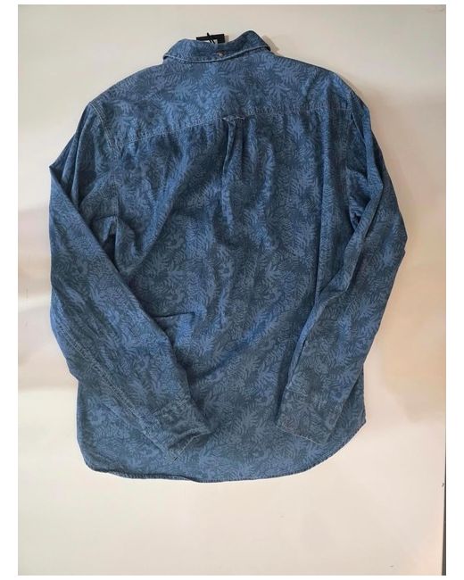 Men's long sleeve button-up shirt by 7 For All Mankind. Blue fabric with subtle leaf pattern. Made from Italian fabric for quality and comfort. Classic collar and button fastening. Suitable for casual or smart casual wear. Condition: New with tags.