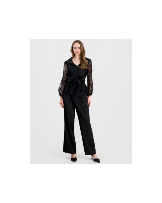 Make a night to remember in an elegant burnout organza formal blouse from Alex Evenings. Semi-sheer sleeves and a self-tying sash elevate the look.