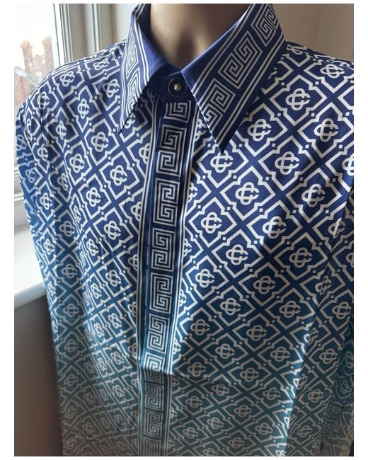 The Casablanca monogram print Shirts are a stylish addition to any man's wardrobe, featuring a graphic print logo on the front, long sleeves, and a round neckline. Made from comfortable cotton jersey fabric, these regular fit T-shirts are machine washable and perfect for the summer season. The designer brand, Casablanca, ensures a high-quality product that is perfect for everyday wear. The classic blue colour and designer theme make these shirts a versatile and trendy choice for any man looking for a fashionable top.