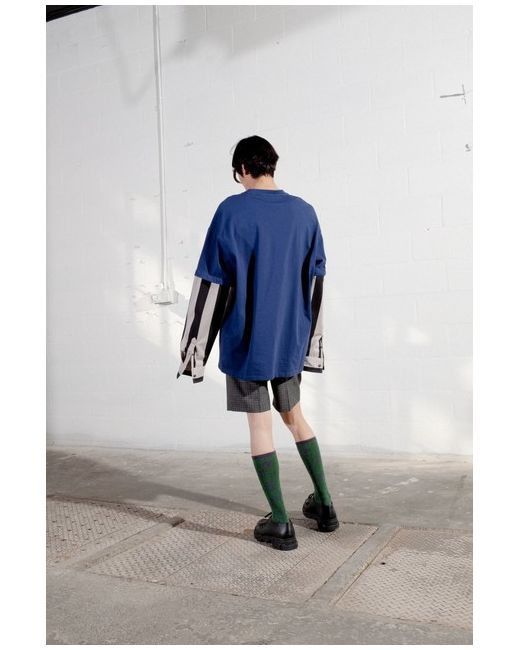 Men's Blue Indigo Oversized Tee with Removable Stripe Shirt Sleeves XS