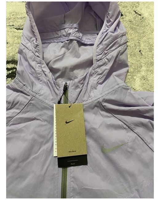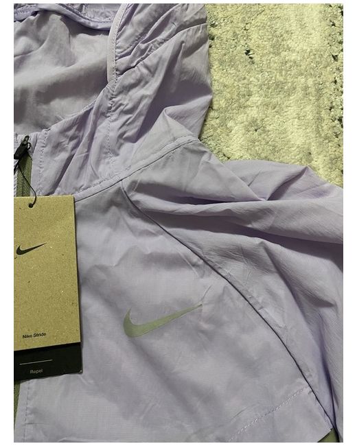 The Nike Stride Repel UV Running Lightweight Jacket is a stylish and practical choice for men who enjoy running and jogging. Made from nylon with a polyester insulation material, it provides warmth and protection while being lightweight and comfortable. The solid lilac grey colour and sporty theme make it a versatile option for various seasons, whether it's winter, autumn, summer, or spring. With long sleeves, a zip closure, and a regular fit, this jacket is perfect for active wear or casual outings.