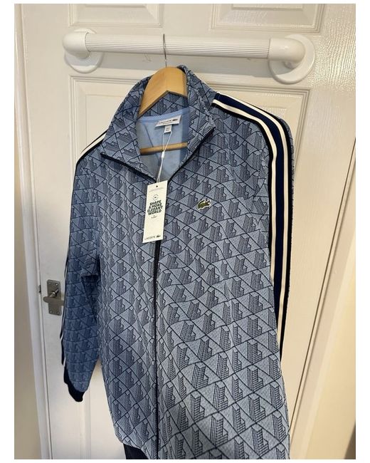 This Lacoste men's knit zip up track jacket in size Large is a stylish and comfortable activewear piece. Made from a cotton blend outer shell material and featuring long sleeves, it is perfect for casual occasions. The jacket is machine washable and comes in a classic blue colour. With its regular fit and polyester insulation, it offers both functionality and style, making it a versatile addition to any man's wardrobe.