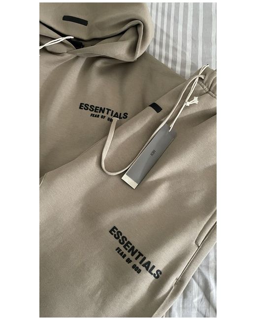 The Sand Essentials tracksuit is a stylish and comfortable two-piece set perfect for winter activewear. Made from soft cotton fleece fabric, this beige tracksuit features a relaxed fit with long sleeves and a drawstring closure. The hoodie in the set includes a logo accent, making it a great addition to your gym and training routine. Easy to care for with machine washable instructions, this tracksuit is in size M and suitable for regular fit. Ideal for men looking for a cosy and practical outfit for their active lifestyle. brand new never been worn size M fits like S