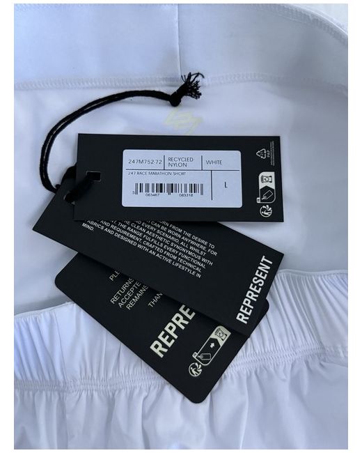 Unused, brand new white men’s 247 Race Marathon Shorts by REPRESENT in size L. Brand new with labels and comes in original packaging as shown in images. These shorts are lined as shown. According to the website’s size guide; Waist width: 15” Front rise: 13” Inseam: 4.7” Leg opening: 14” From smoke and pet free home.