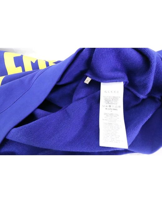 This Gucci Men's New Sweatshirt in Blue, Size M, is a stylish and high-quality addition to any man's wardrobe. Made from cotton, this long sleeve sweatshirt features a classic crew neck design with the Gucci logo accent. The pullover style makes it easy to wear, perfect for autumn, winter, and spring seasons. Made in Italy, this sweatshirt exudes luxury and sophistication, ideal for the modern man looking to make a statement with their fashion choices.