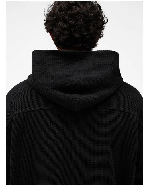 RRP: £180.00. Introducing the Waffle Zip Through Hoodie in Jet Black, featuring an oversized boxy fit that enhances its drapey silhouette. Waffle Zip Through Hoodie. Jet Black Colourway.