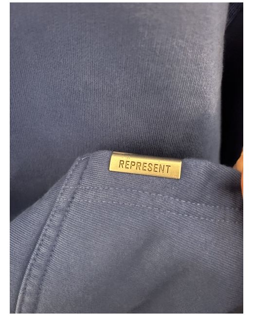 The Represent Hoodie in Blue is a stylish and comfortable pullover with long sleeves and a round neckline, perfect for the winter season. Made from soft fleece cotton material, this hoodie features a hooded closure and a logo accent, adding a touch of designer flair. Machine washable for easy care, this hoodie is a versatile addition to any man's wardrobe, suitable for regular wear and featuring a classic pullover style. Represent Clo brand ensures quality and style for the modern man looking to stay warm and on-trend.