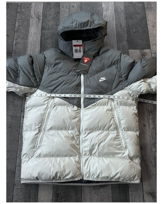 The Nike Storm Fit Primaloft Windrunner Zip Puffer Jacket Coat in grey is a stylish and practical choice for cold weather. Made from polyester with a softshell fabric type, this jacket features a zip closure and logo accents. The synthetic insulation material ensures warmth, making it perfect for winter and spring seasons. With a regular fit and size L, this jacket is machine washable for easy care. The Nike brand and quality construction make this a reliable and fashionable choice for men looking to stay cosy and on-trend. New with tags Size UK Large - Please See Measurements in photos.. 100% AUTHENTIC ✅