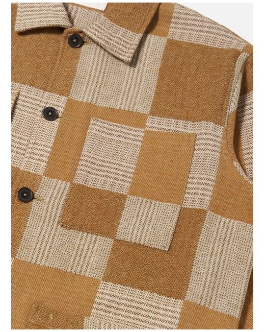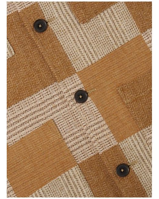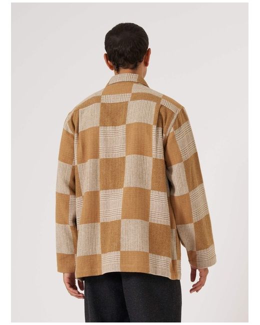 Brown Japanese Patchwork Dockside Jacket The Dockside is practical and purposeful, with an unstructured shape, complete with a back yoke with back pleats, and four front pockets that take inspiration from military fatigue styles.