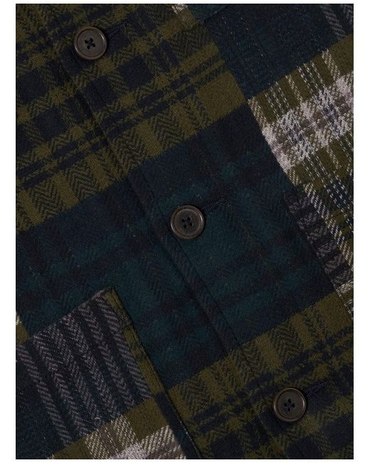 Green Japanese Patchwork Dockside Jacket The Dockside is practical and purposeful, with an unstructured shape, complete with a back yoke with back pleats, and four front pockets that take inspiration from military fatigue styles.