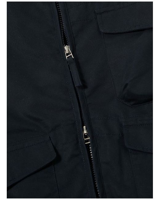 Our model is 6' 0" with a 38' Chest and is wearing a size ‘Large.’. A tightly woven fabric, for a clean, utilitarian look. Durable and hard wearing, it holds its shape, in a blend of 65% cotton and 35% recycled polyester fibres.