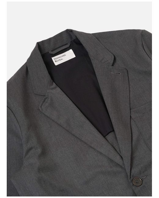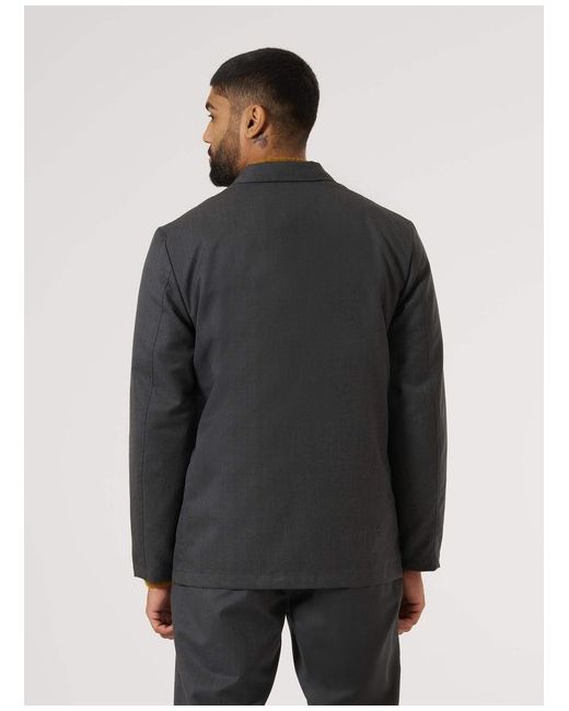 Charcoal Travel Suiting Two Button Jacket A contemporary, relaxed fit two-button jacket with slight shaping through the waist and with a longer, wider lapel. Our model is 6' 1" with a 39' Chest and is wearing a size ‘Large.’.