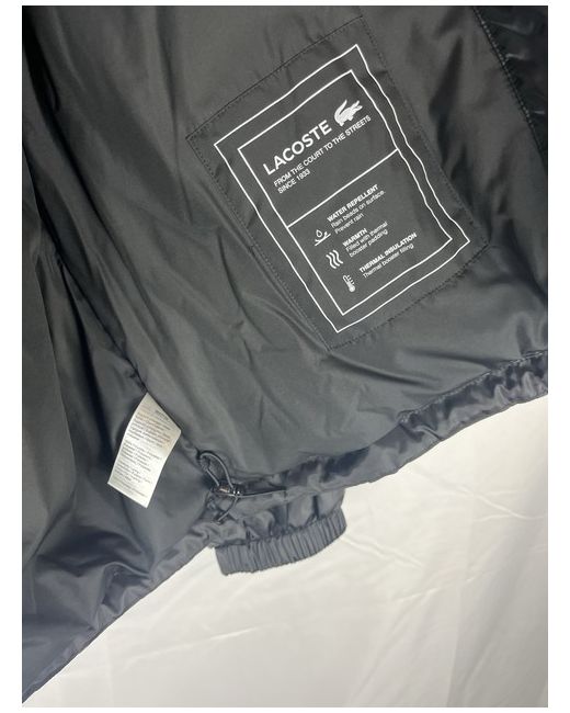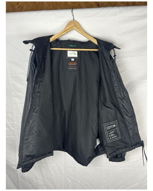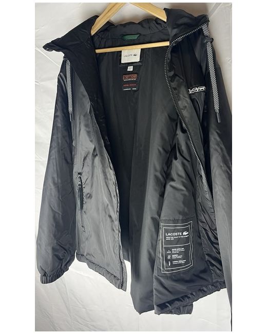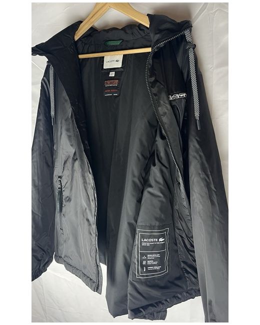 • Thermore® insulation for heat retention and breathability. Lacoste Hooded Thermal Jacket – Black. • Printed Lacoste badge on chest. The jacket features a full zip fastening and an adjustable hood with reflective drawstrings for added visibility.