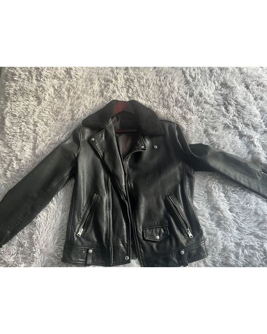 This All Saints Black Leather Jacket is a stylish and versatile addition to any man's wardrobe. Made from high-quality leather, this short jacket features a zip closure and a regular fit, perfect for casual occasions in the spring season.