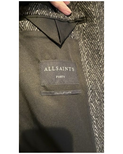 Never worn, without tags, men’s All Saints wool coat. Sits just above the knee. Black and grey herringbone pattern.