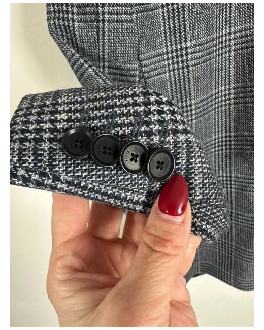 This Ted Baker blazer jacket in navy blue check is a stylish and sophisticated addition to any man's wardrobe. Made from a wool blend, this mid-length jacket is designed with attention to detail, featuring a tailored fit and a classic blazer style. The small size 2 ensures a flattering silhouette, perfect for a smart-casual look or formal occasions. The timeless blue colour adds a touch of elegance, making it easy to mix and match with different outfits for a versatile style.