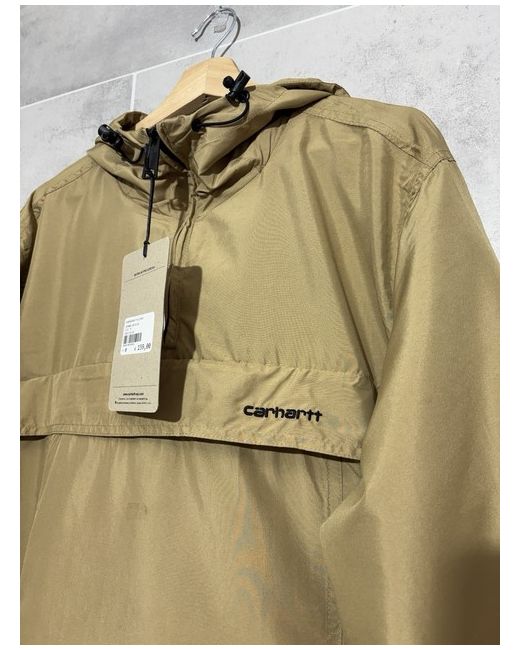 Carhartt Men’s Medium Beige WIP Windbreaker Pullover Jacket BRAND NEW WITH TAGS - imperfections (small marks) as shown but will most likely come out in a wash. RRP €159 Pit to pit 60cm Length 74cm This Carhartt Men's WIP Windbreaker Pullover Jacket in medium size is a brand new beige jacket with tags. Made from nylon with polyester insulation, this casual windbreaker features a zip closure and Carhartt logo accents. Machine washable and designed for walking, this jacket is a stylish and practical addition to any man's wardrobe. The neutral beige colour and regular fit make it versatile for everyday wear.