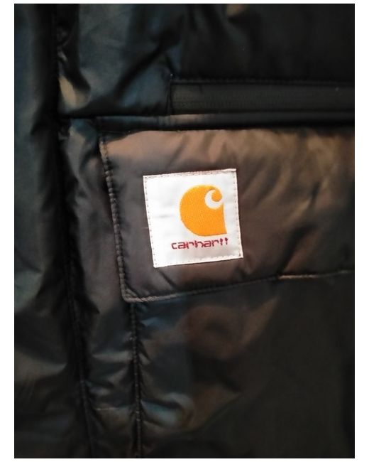 The Carhartt Puffer Jacket in medium size is a stylish and practical choice for casual occasions. Made from polyester, this black jacket features a zip closure and is machine washable for easy care. With a logo accent and a regular fit, it is perfect for winter season activities like walking. The heavyweight design offers warmth and protection, making it a reliable choice for outdoor adventures.
