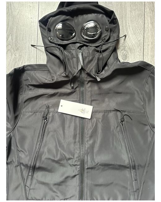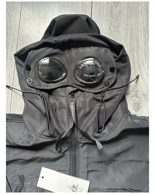 The C.P. Company Men's Shelled Jacket in size small is a stylish black polyester jacket perfect for casual occasions in the winter season. This windbreaker features a zip closure, softshell fabric, and insulated with down for added warmth. The jacket also includes the brand's logo accents, making it a fashionable and functional choice for men looking for a practical and versatile outerwear option. Easy to care for as it is machine washable, this regular fit jacket offers a shell theme design that is both practical and on-trend.