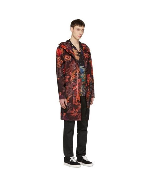 New never worn Paul Smith Raincoat Medium Pit to Pit 24" inches across Length 42" inches Super statement piece, rare piece. It went to main production and cost rrp $1495 Long sleeve double-faced ripstop jacket in red featuring graphic pattern printed throughout. Grosgrain drawstring striped in navy and white at hood. Concealed two-way zip closure with press-stud placket at front. Flap pockets at body. Zippered vent at cuffs. Concealed drawstring at waist. Gold-tone hardware. Tonal stitching. **No care label. Any questions let me know
