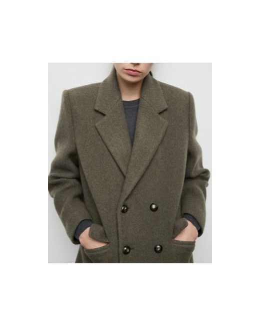 Modern balance marks the Double-Breasted Wool Coat from Mango. Made from wool-blend fabric, this long wool coat features straight design, V-neck with notch lapels, long sleeves, front flap pockets, double-breasted fastening, and inner lining.