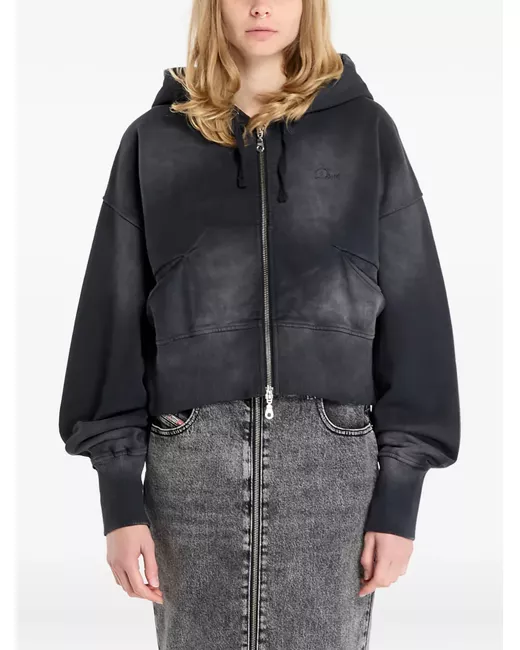 black hooded zip fastening long sleeves ribbed cuffs ribbed hem