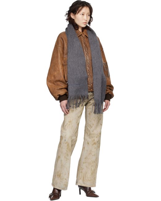 Rectangular brushed alpaca- and wool-blend flannel scarf. · Logo embroidered at face · Fringed detailing at ends · L67 x W10.5 Supplier color: Gray Melange