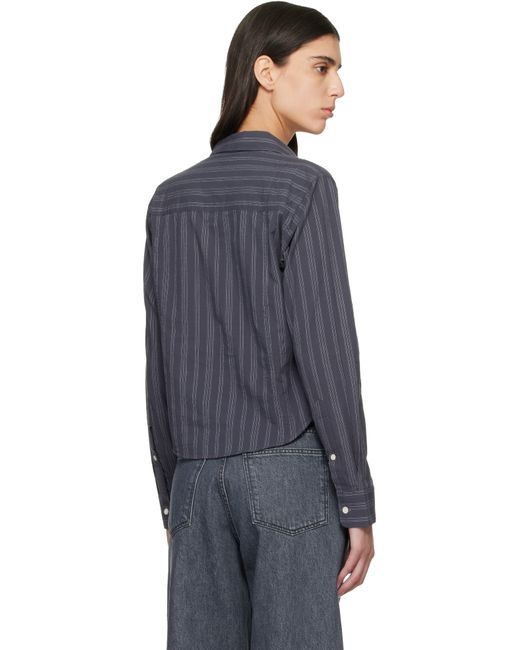 Cotton poplin shirt. · Garment-washed · Stripes throughout · Paneled construction · Spread collar · Button closure · Cropped shirttail hem · Pleat at adjustable buttoned barrel cuffs · Resin hardware Supplier color: Dark grey double stripe