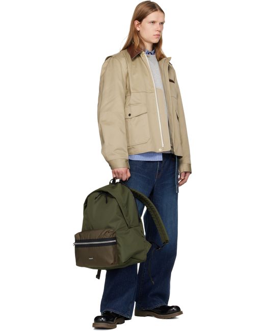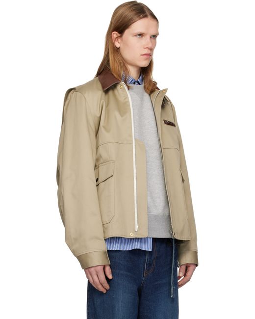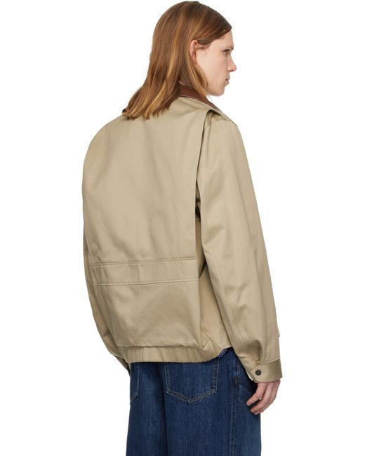 Cotton twill jacket. · Leather spread collar · Zip closure with press-stud placket · Zip pocket at chest · Flap and zip pockets at waist · Zip expansion panel at cuffs · Press-stud barrel cuffs · Twin pleats at back yoke · Full cupro satin lining Supplier color: Beige