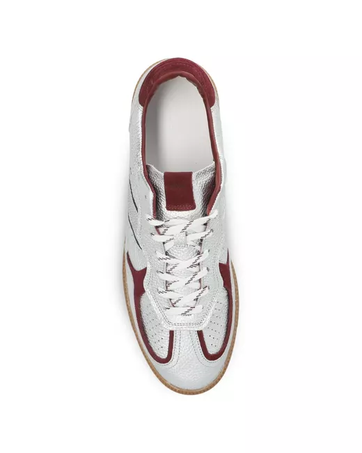 silver-tone/red leather upper lace-up fastening low top round toe flat sole