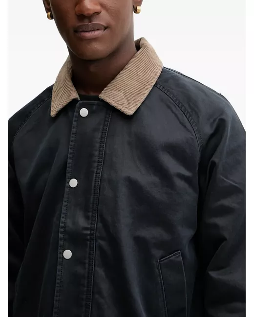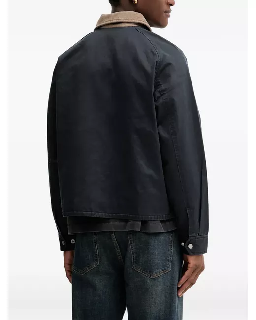navy blue corduroy collar button fastening chest welt pocket buttoned cuffs