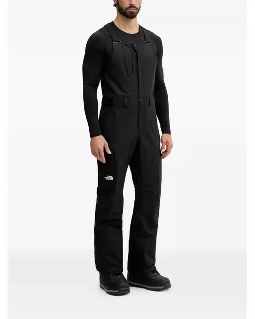 black suspender straps button fastening multiple pockets logo detail belt loops