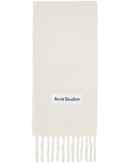 Rectangular brushed alpaca- and wool-blend flannel scarf. · Logo patch and logo appliqué at face · Fringed detailing at ends · L90 x W11 Supplier color: White