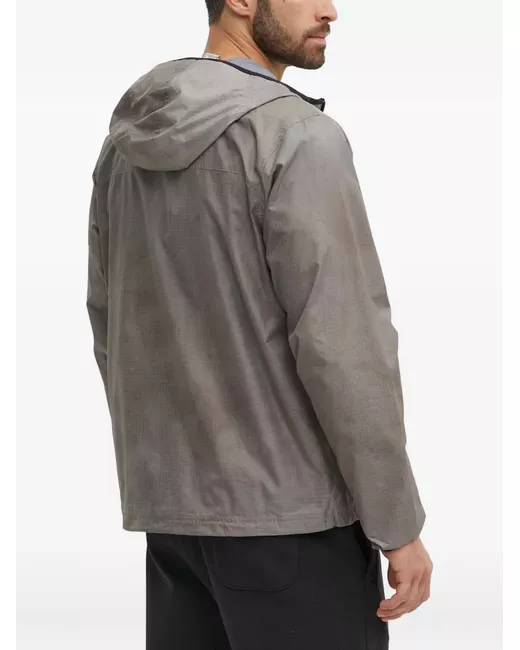 light grey tonal grid pattern hooded design half-zip fastening chest pocket logo detail