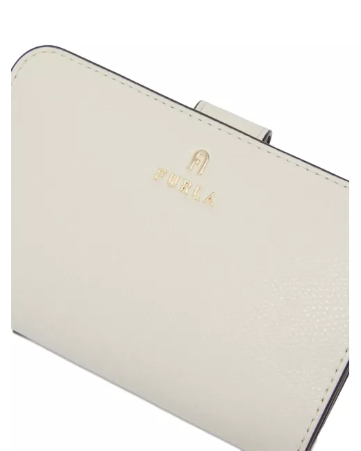 white leather punched logo ten inner credit card slots inner zipped coin pocket flap press-stud closure